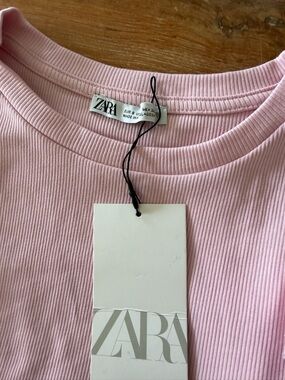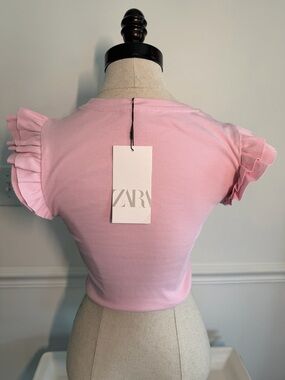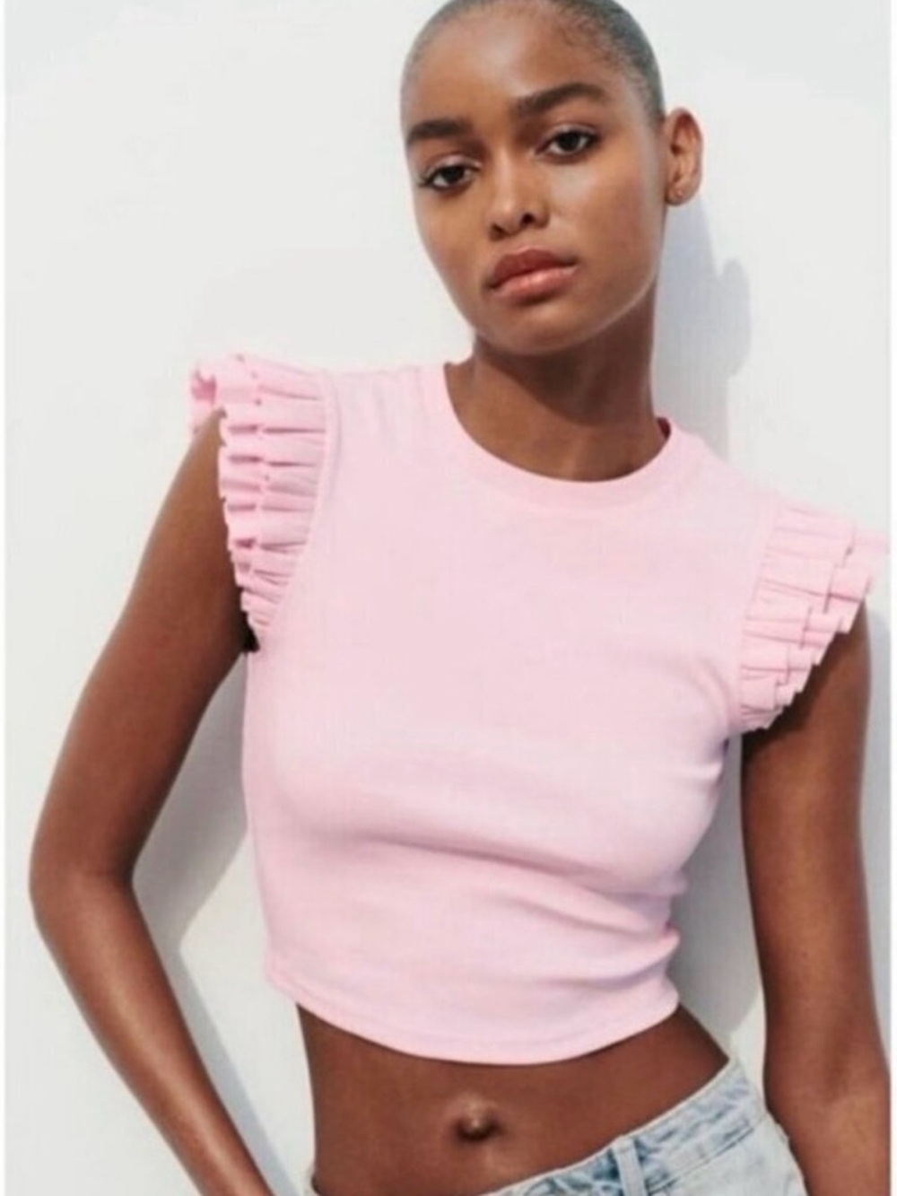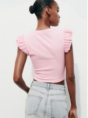 Zara Pink Ruffle-Sleeve Ribbed Crop Top