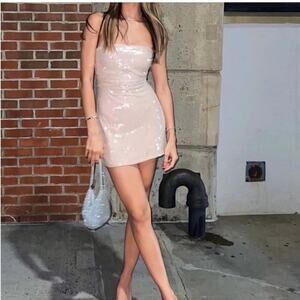 Zara Pink STRAPLESS DRESS WITH SEQUINS Size Extra Large XL