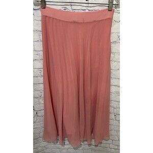 The Zara Pink/Salmon Color pleated Side Zip Maxi skirt in size Medium is a versatile and stylish piece for any woman's wardrobe. Made from polyester, this long skirt features a solid pink color with pleated accents, adding a touch of elegance to any outfit. The side zip closure makes it easy to wear for various occasions, from casual to formal, workwear to parties and travel. With its brand reputation for quality and fashion-forward designs, this skirt from Zara is sure to become a go-to item for any occasion. 28 inch waist and 33 inches long. Smoke free home.