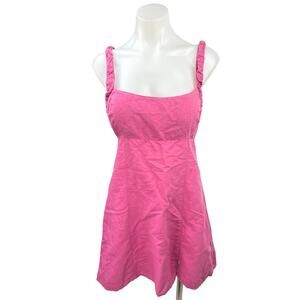Zara Women's Pink Square Neck Sleeveless Lace Up A-Line Flare Cami Tank Mini Dress | 53% Linen 47% Cotton.