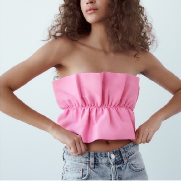 Zara Pink Strapless Ruffled Top