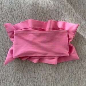 Worn once! Elevate your style with this chic pink strapless ruffled top. Perfect for any occasion, this top adds a touch of elegance to your wardrobe.