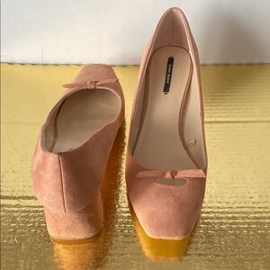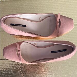 Zara Pink Suede Basic Collection Heels with Elegant Bow Design