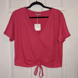 Zara Pink Textured V Neck Cut Out Keyhole Drawstring Front Blouse Crop Top M
