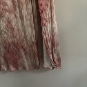 Light pink and white tie dye/ombre pattern, pleated fabric with a sateen like look and feel