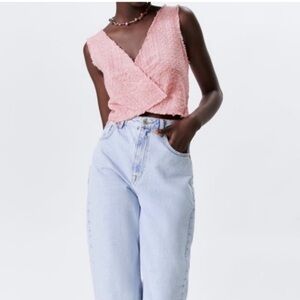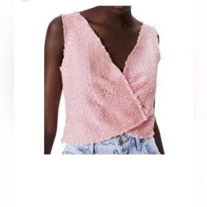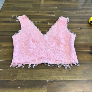 Zara Pink Tweed Top Tank Crop Cropped Fringe S