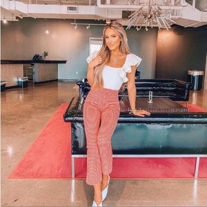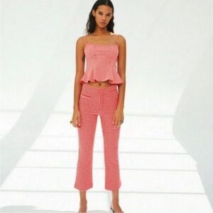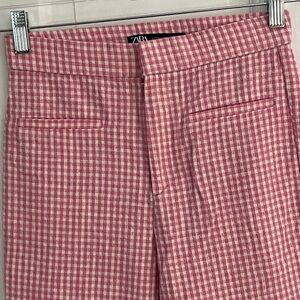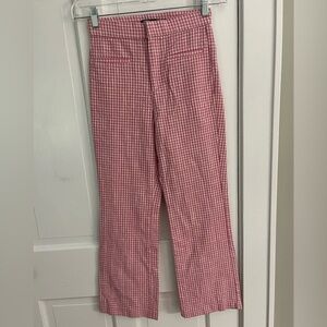 Excellent condition! Zara Pink and white gingham high waisted flare crop pants slacks size XS