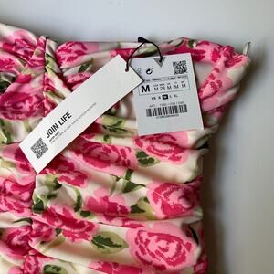 Vibrant floral design with pink flowers. Green leaf details. Stylish and versatile.