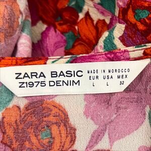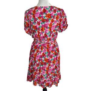 Zara Pink and Red Floral Print Short Sleeve Mini Wrap Dress Size Large