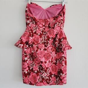 Zara Pink & Red Floral Print Knit Mini Dress Sleevless w Rhinestone Peplum Accents