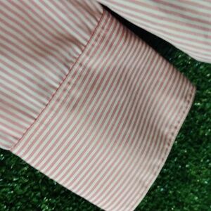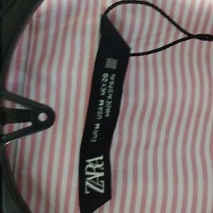 Chic Zara shirt with pink and white stripes. Ideal for versatile styling.