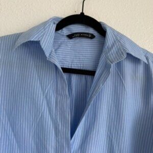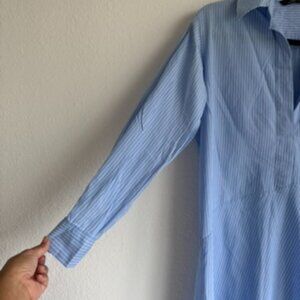Zara Pinstripe Asymmetrical Hem Long Sleeve Layering Roomy Top Size Large