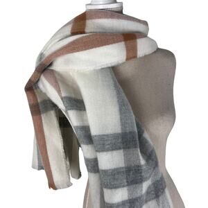 Zara Plaid Blanket Scarf in Neutral Gray White Camel Check Wrap Shawl