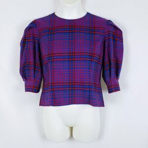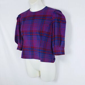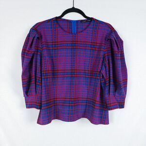 Zara Plaid Blouse Womens XL Puff Sleeve Grunge Punk Structured Retro Maximalist