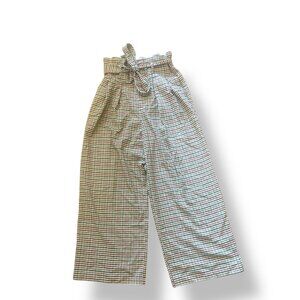 Zara Plaid Check Wide Leg Pants Womens Sz S Paperbag Waist Tie Cropped Retro