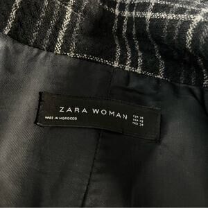 Oversized fit, long, fully lined. Double breasted button closure. A major must-have, this effortless coat/jacket from Zara is featured in a contrast plaid- tartan print and double breasted button style in an oversized, slouchy silhouette. Big patch pockets. Dropped shoulders.