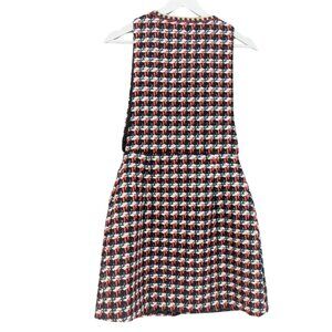 Chic plaid dress with a classic bow. Features a sleeveless design and front pockets. Perfect for a stylish look.