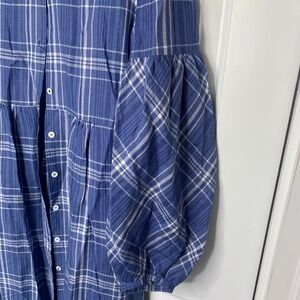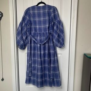 Zara Plaid Midi Dress Belted Balloon Sleeve Blue Size Small blogger favorite