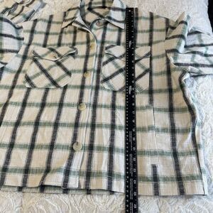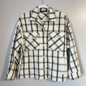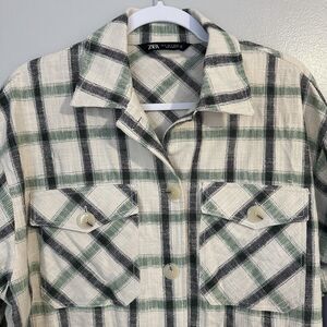 Zara Plaid Overshirt Shacket Oversized S Cream Green Button Front Jacket