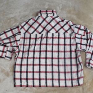 Step up your layering game with this Zara Plaid Oversized Shirt Jacket – a timeless and versatile piece crafted from premium Italian fabric. This jacket features a modern boxy fit, classic red, white, and black plaid stripes, and a cozy feel perfect for transitional weather.