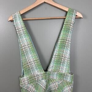 Zara Plaid Pinafore Tweed Dress Pastel Green White Overall Mini size Small