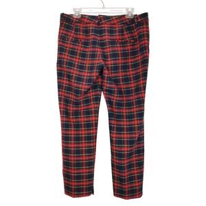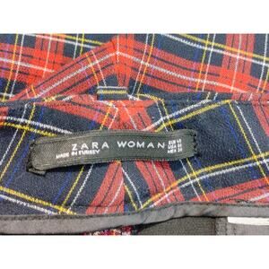 Zara Plaid Trouser Pants Straight Leg Mid Rise Red Black Holiday Womens Size 6
