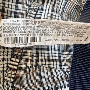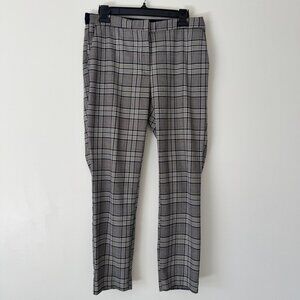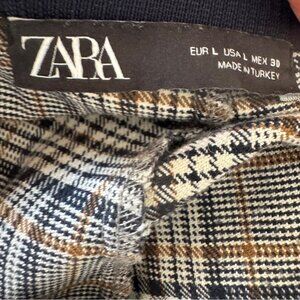 Zara Plaid Trousers Pants Zip Closure Elastic Waist at Back Straight Leg Sz L