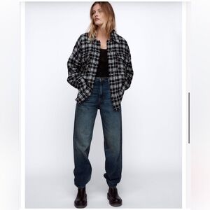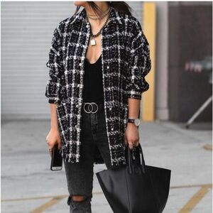 Zara - Women’s Plaid Tweed Snap Button Front Shirt Jacket Black White Bloggers Fave Shacket Oversized