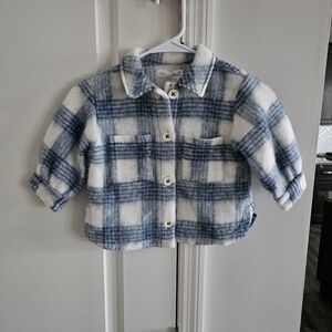 Kids size 2-3. New with tags. Blue/white Plaid. Button up. Chest pockets. Polyester/wool.