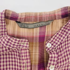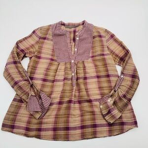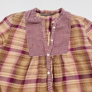 Zara | Plaid peasant Shirt - Purple and Brown | size medium