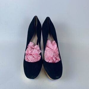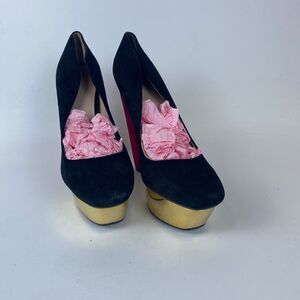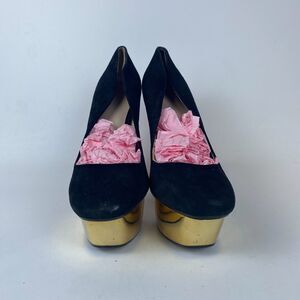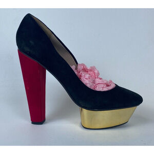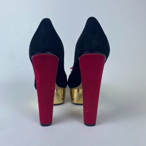 Zara Platform Disco Heels Shoes Womens Size 10.5 Black Red Gold Almond Toe