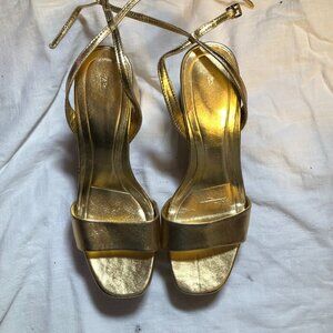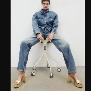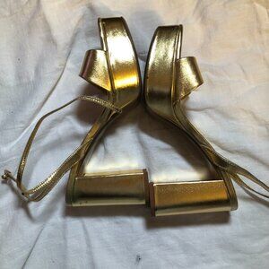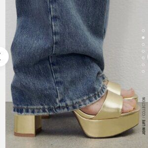 Zara Platform Heeled Leather Sandals Gold Size 39/8-8.5