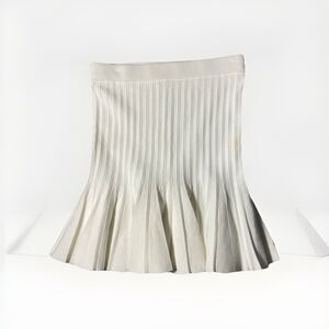 Zara Pleated Bell Skirt Womens Large White 56% Nylon Waist Measured Flat Flat 15 Length 20