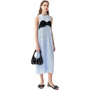 Zara Pleated Crocheted Grecian Crinkle Flowy Maxi Dress NWT Size Small