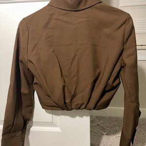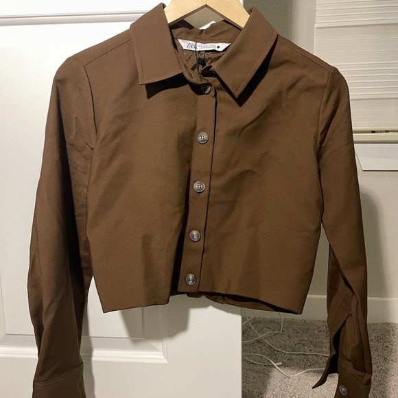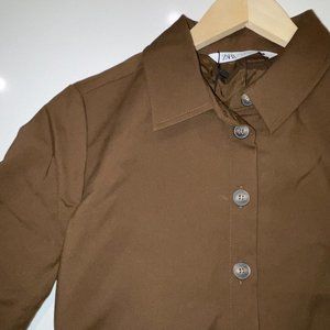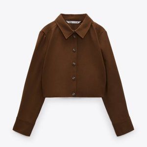 Zara Pleated Crop Top Button Up Shirt