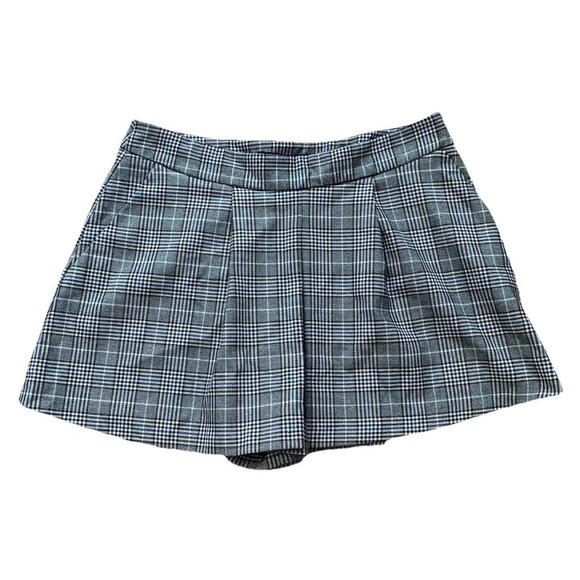 Zara Pleated Plaid Mini Side Zip Shorts Women's Medium Gray Multicolor