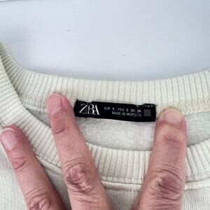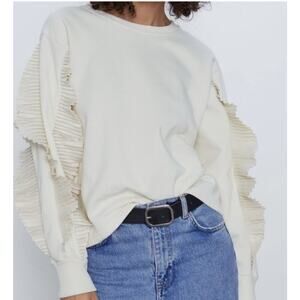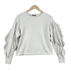 Zara Pleated Ruffle Sleeve Off Ivory Women's Crewneck Sweatshirt Sweater Small