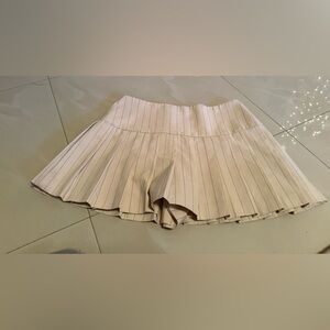 Questions? Leave a comment below! light camel skort that features a high waist, wrap front, pleat details, and side size Small