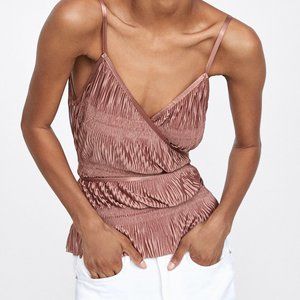 Zara Pleated Strappy Wrap & Tie Top Beige Pink