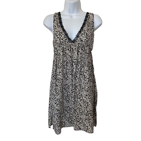 Zara Plunge V-Neck Tunic Sleeveless Top Lace Trim Black and Cream Size 8