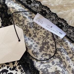 NWT Zara sleeveless top / tunic. Black and cream. Lace trim. Size 8.
