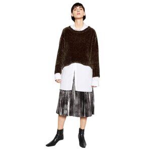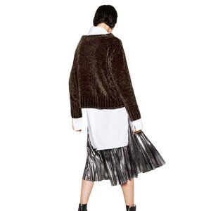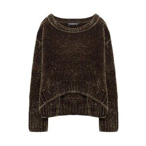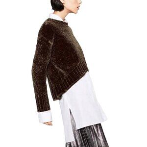 Zara Plush Chenille Thick Hi Low Olive Green Sweater L