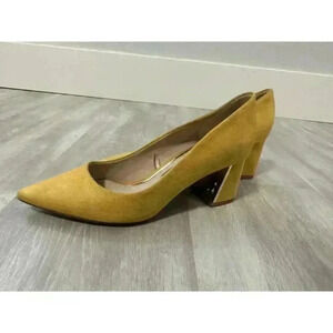 Zara Pointed-Toe Suede Block Heel Pumps in Yellow size 36