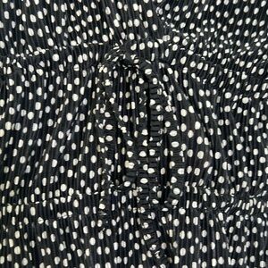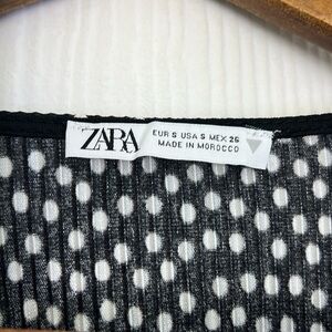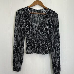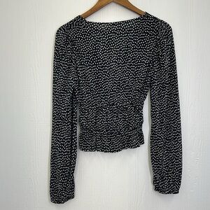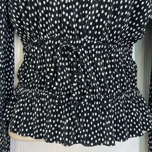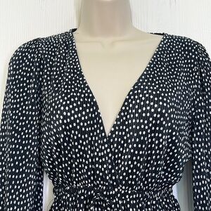 Zara - Polka Dot Black & White Plunge Tie Silky Like Long Sleeve Blouse Size Small