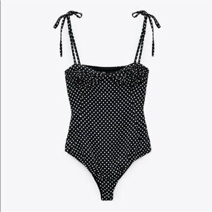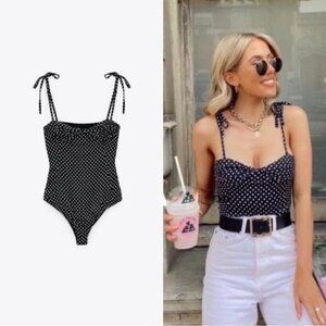 Zara Polka Dot Printed Satin-Effect Bodysuit Black and White Size XS