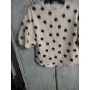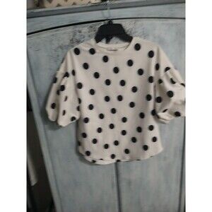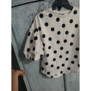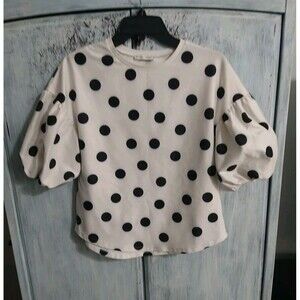Zara Polka Dot Puff Sleeve Blouse Size Small White & Black Boho Artsy Feminine