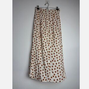 Zara Polka Dot Ruched Midi Skirt Womens XS White Brown Linen Cotton