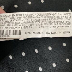 Zara Black Sheer Polka Dot Blouse with Contrasting Claudine Collar and Ribbon Tie Neck Detail in Size Small