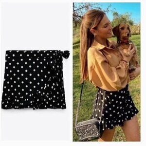 Zara Polka Dot Skort in black and white. Shorts with a wrap style skirt front that ties on the side. Zipper back. In great condition, Size XS