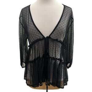 Zara. Polka Dot Swiss Dot Sheer LS Blouse Sm Back Whimsigoth Fairygrunge witchy sexy sheer coverup oversized
